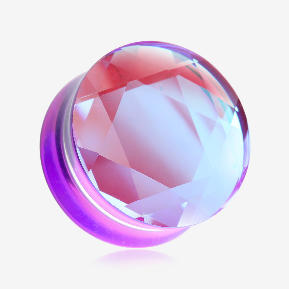 A Pair of Iridescent Multi-Faceted Glass Double Flared Plug
