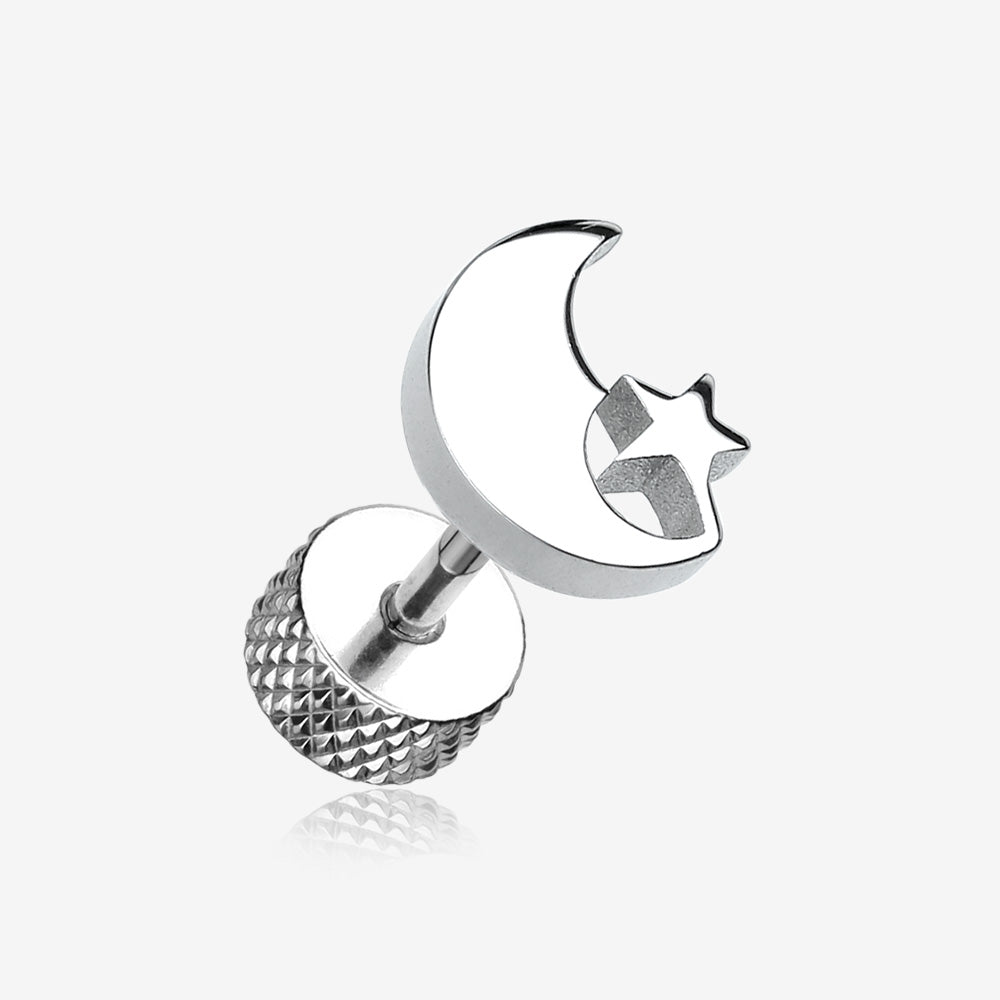 A Pair of Crescent Moon & Star Steel Fake Plug Earring