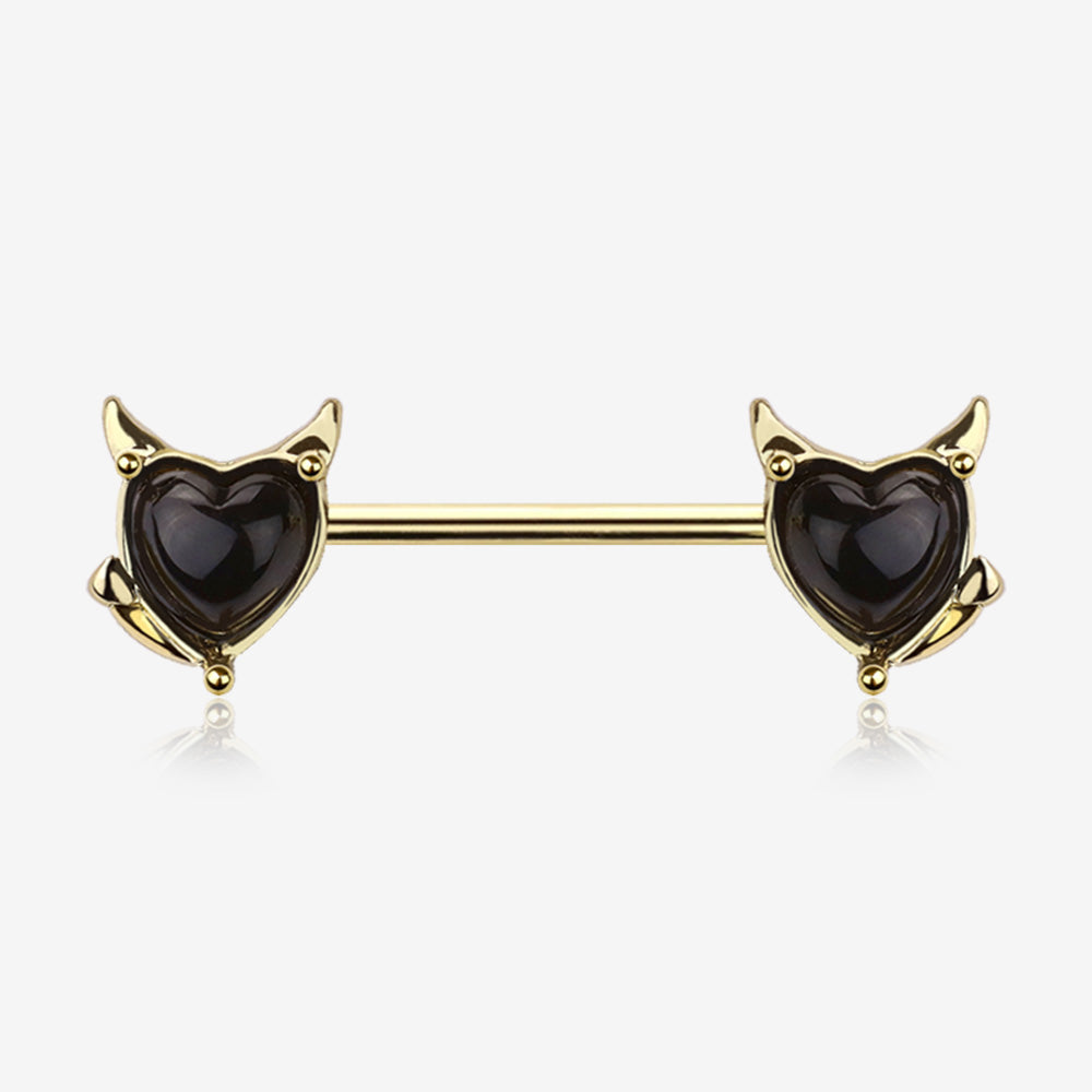 A Pair of Golden Devil Heart Sparkle Nipple Barbell