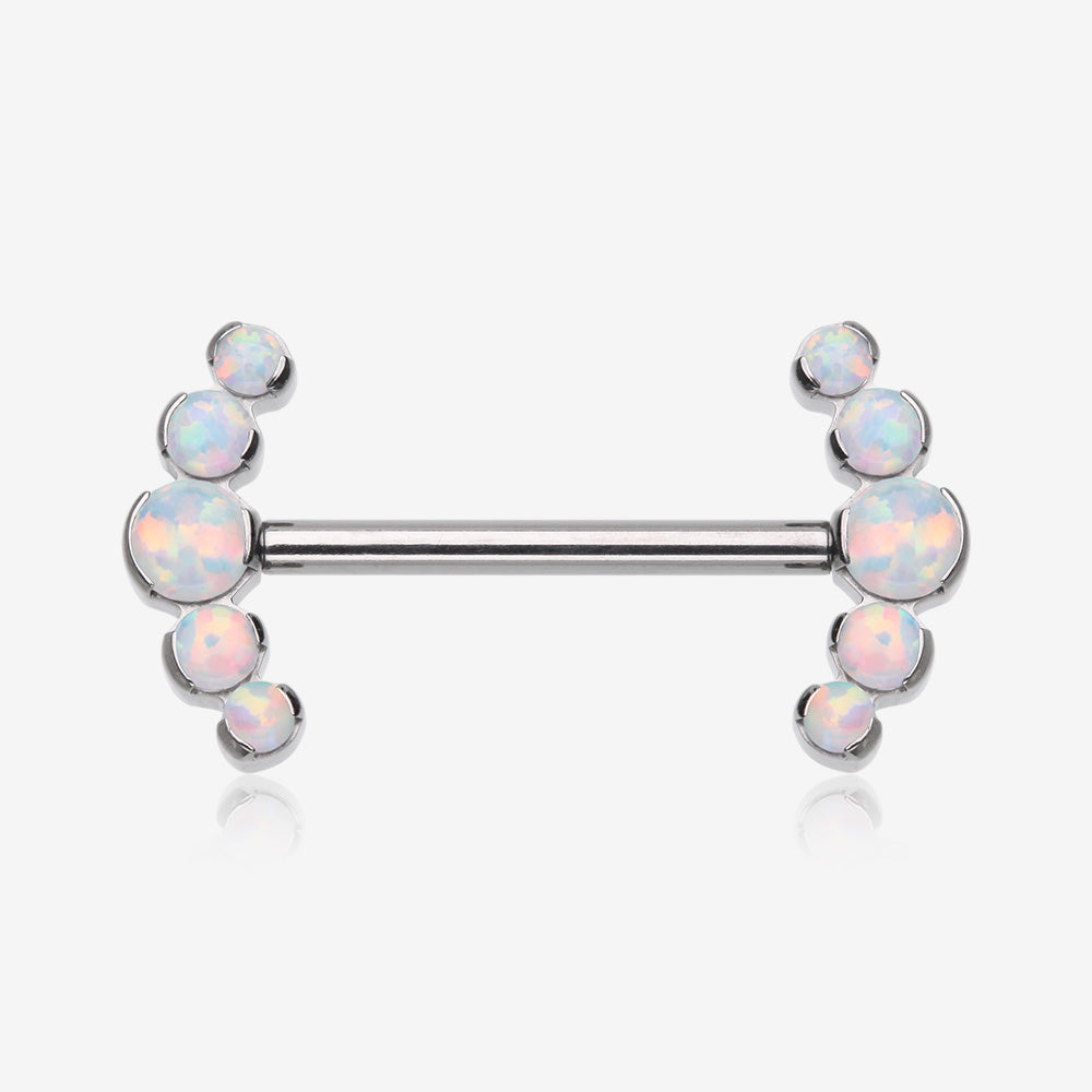 A Pair of Implant Grade Titanium Threadless Fire Opal Ray Multi-Gem Nipple Barbell