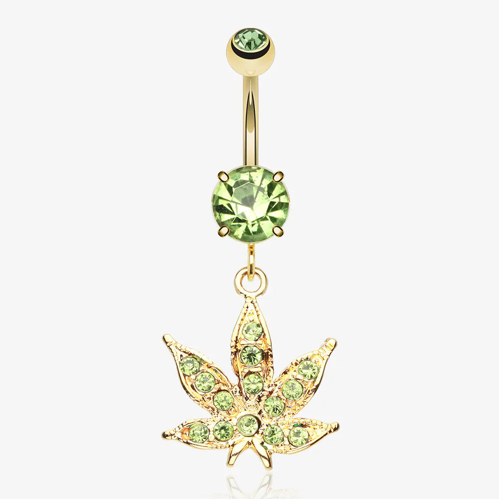 Golden Cannabis Leaf Sparkle Belly Button Ring