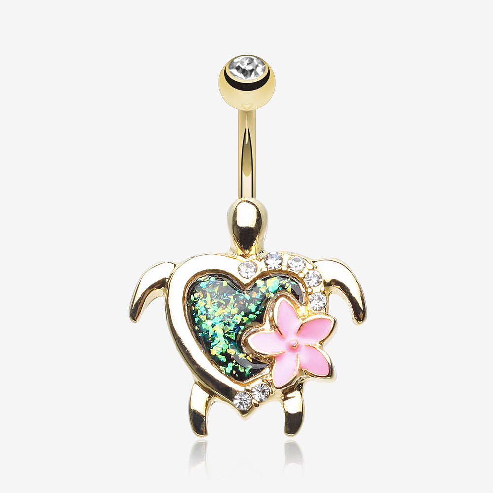 Golden Hawaiian Flower Turtle Opal Sparkle Belly Button Ring