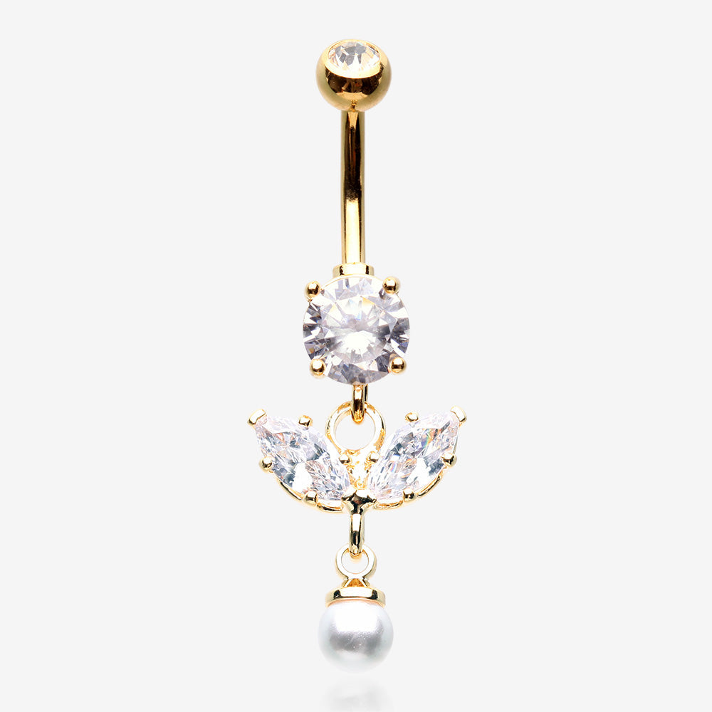Golden Marquise Sparkle Leaflet Gem Pearlescent Dangle Belly Button Ring