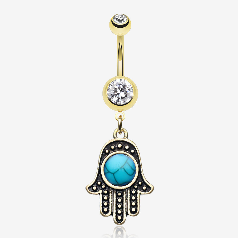 Golden Vintage Turquoise Hamsa Belly Button Ring