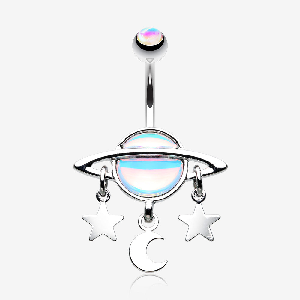 Iridescent Revo Sparkle Saturn with Stars and Moon Belly Button Ring