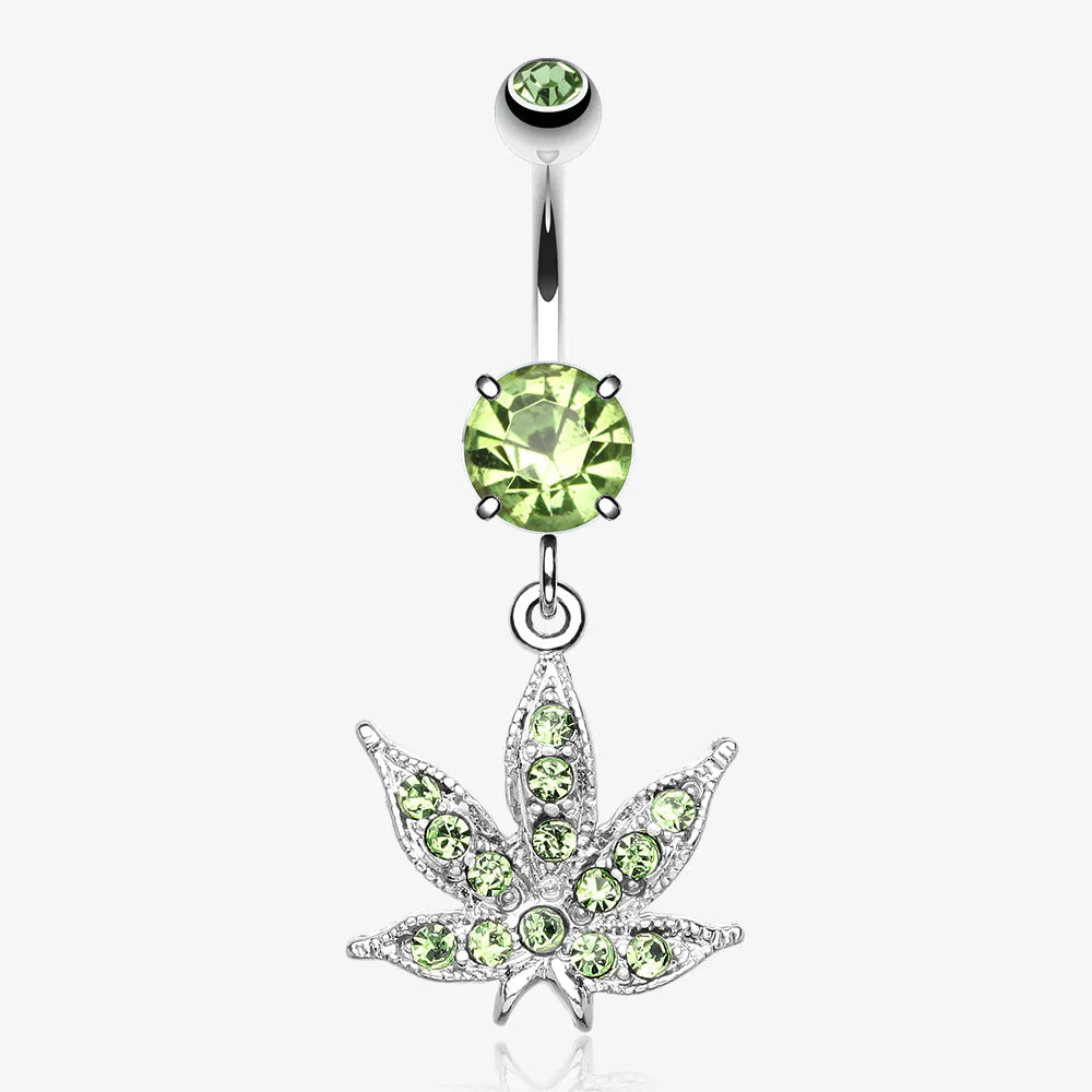 Marijuana Leaf Sparkle Belly Button Ring