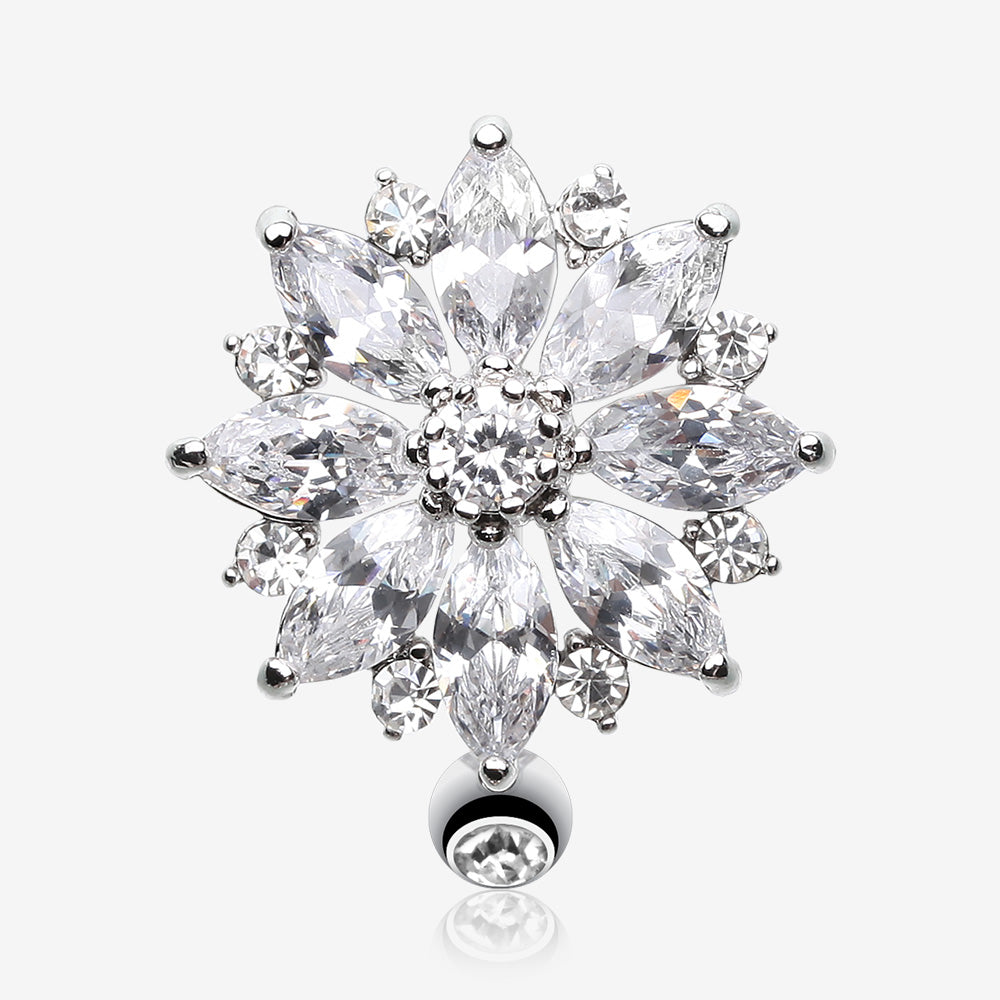 Radiant Flower Multi-Gem Marquise Belly Button Ring
