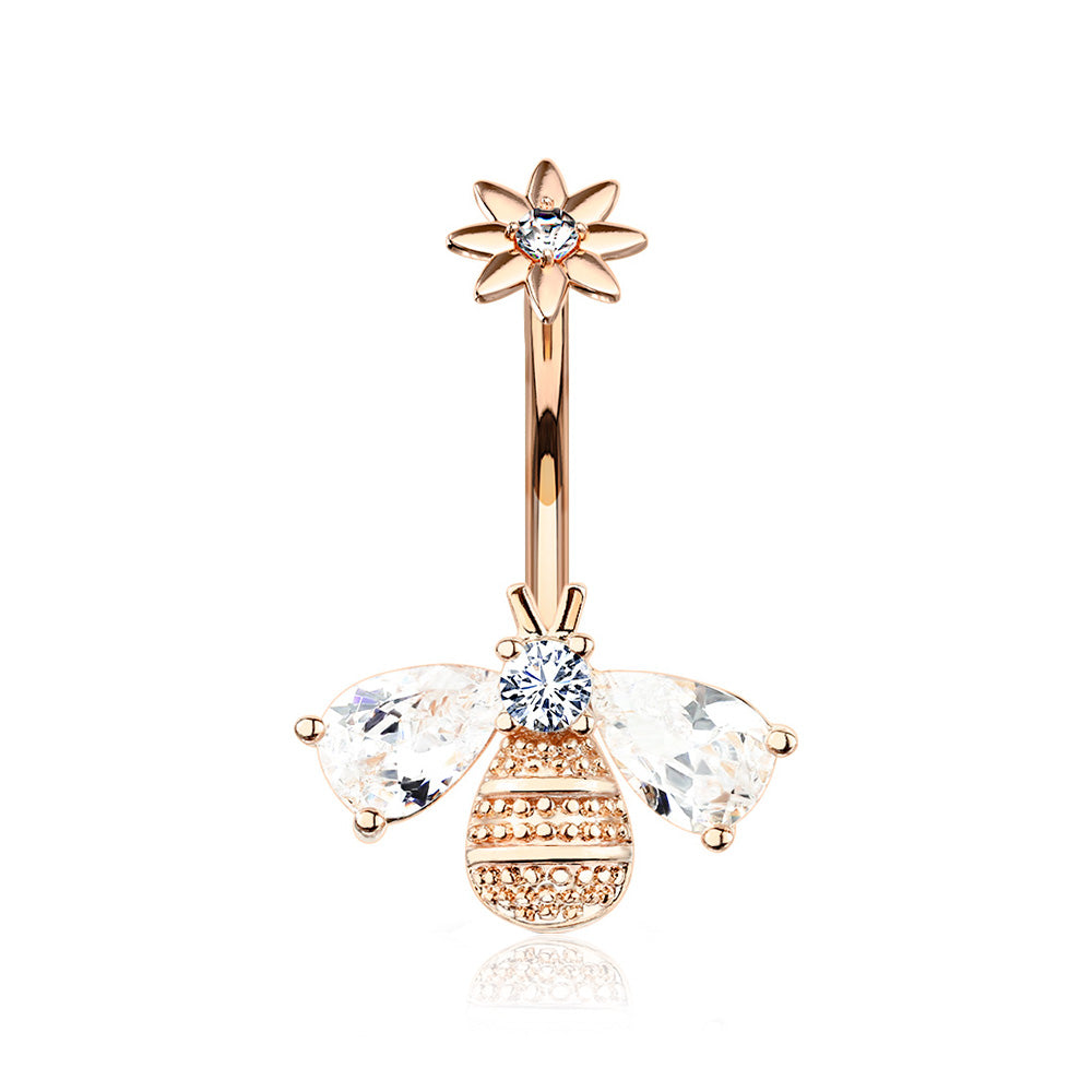 Rose Gold Flower Sparkle Honey Bee Internally Threaded Belly Button Ring