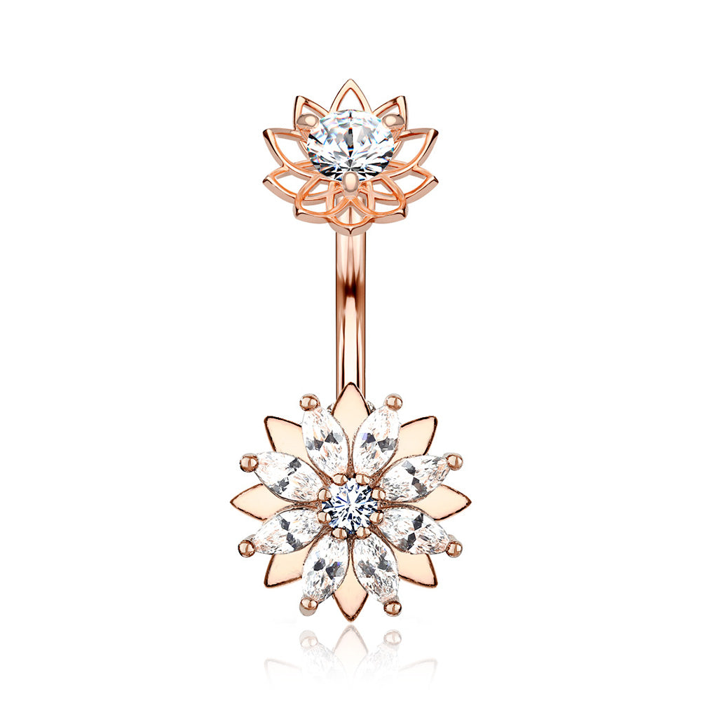 Rose Gold Marquise Sparkle Flower Internally Threaded Belly Button Ring