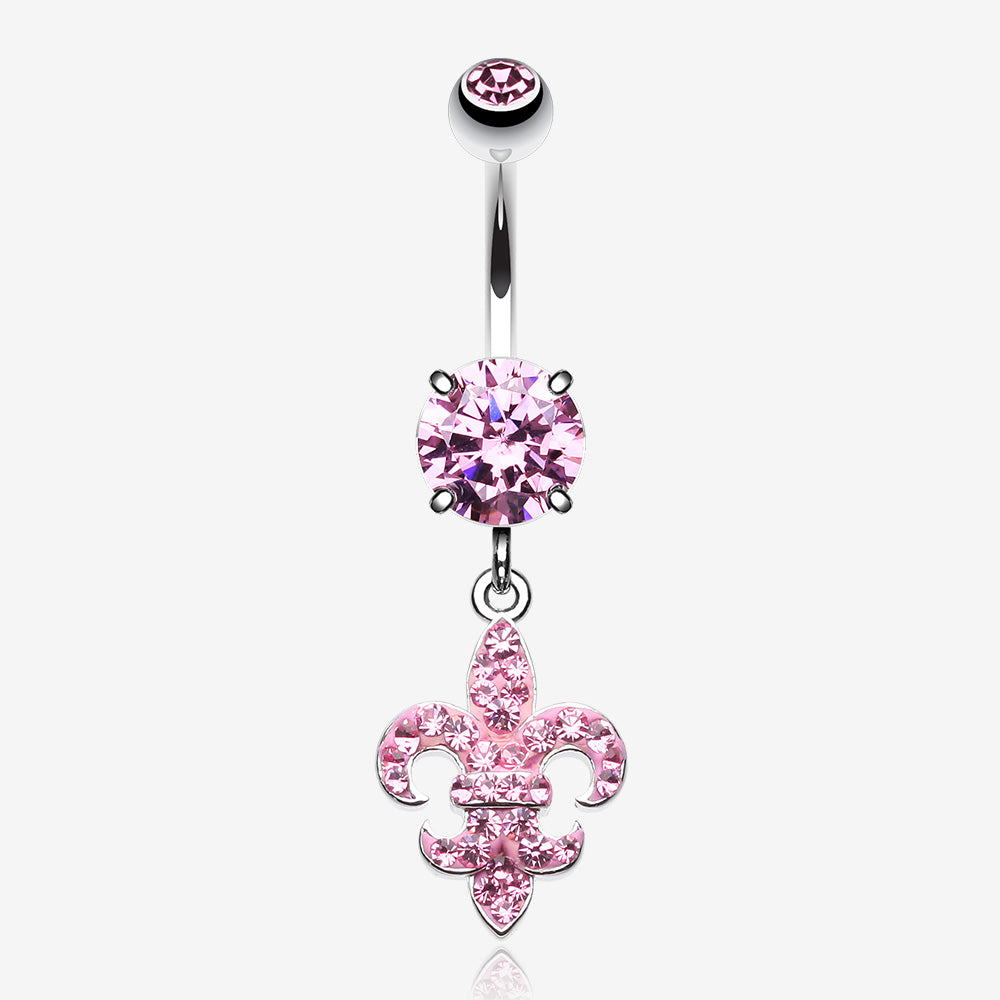 Royal Fleur De Lis Multi-Gem Sparkle Dangle Belly Button Ring