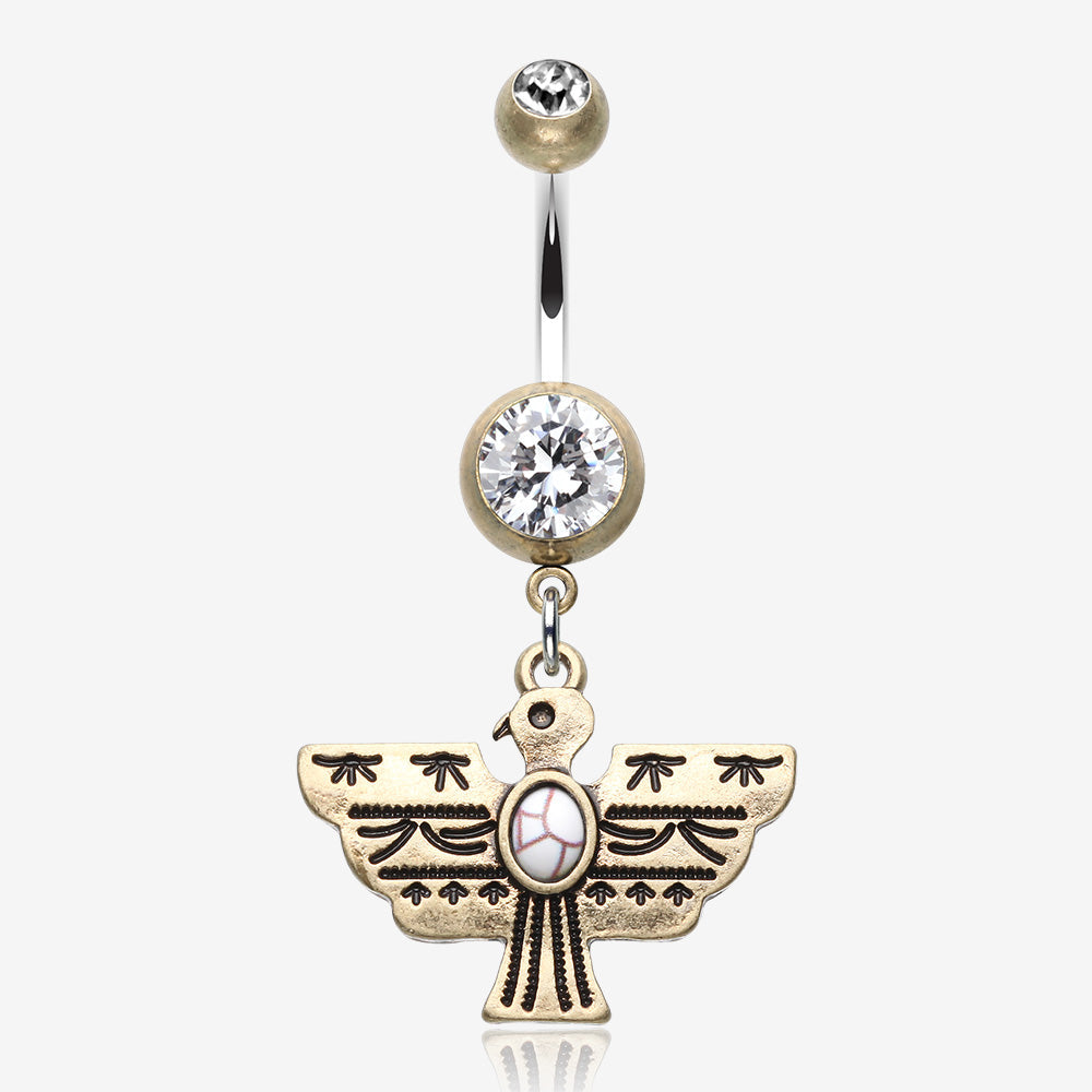 Vintage Boho Aztec Thunderbird Mural Belly Button Ring