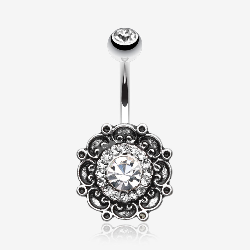 Vintage Filigree Flower Multi-Gem Belly Button Ring