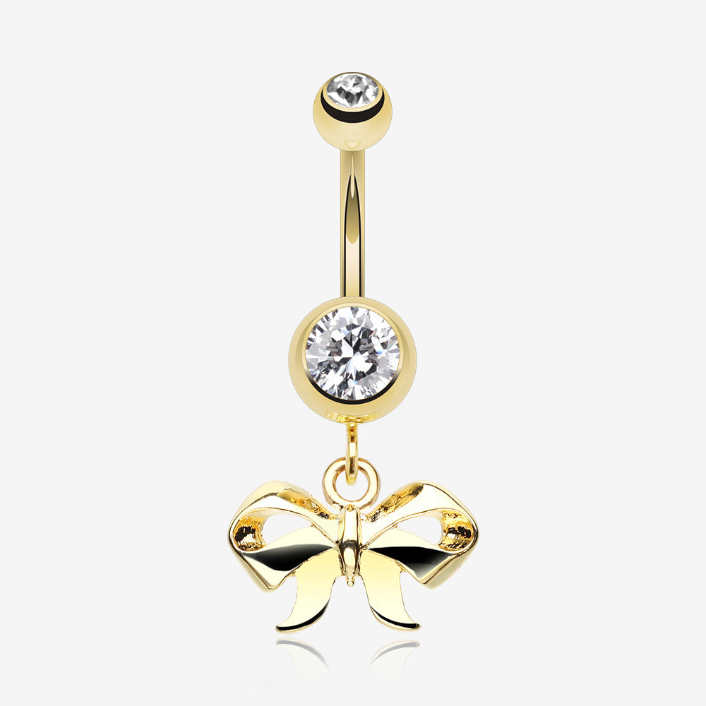 Golden Dainty Bow Tie Ribbon Belly Button Ring