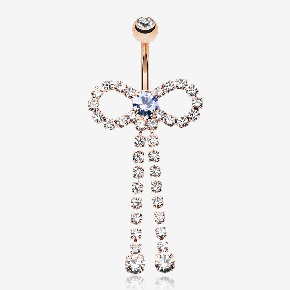 Rose Gold Radiant Sparkles Bow-Tie Belly Button Ring