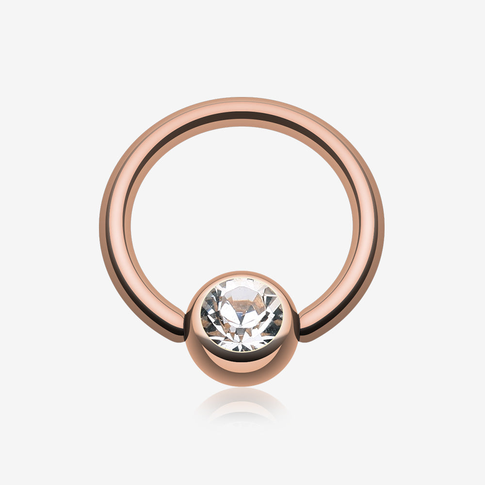 Rose Gold Plated Gem Ball Captive Bead Ring