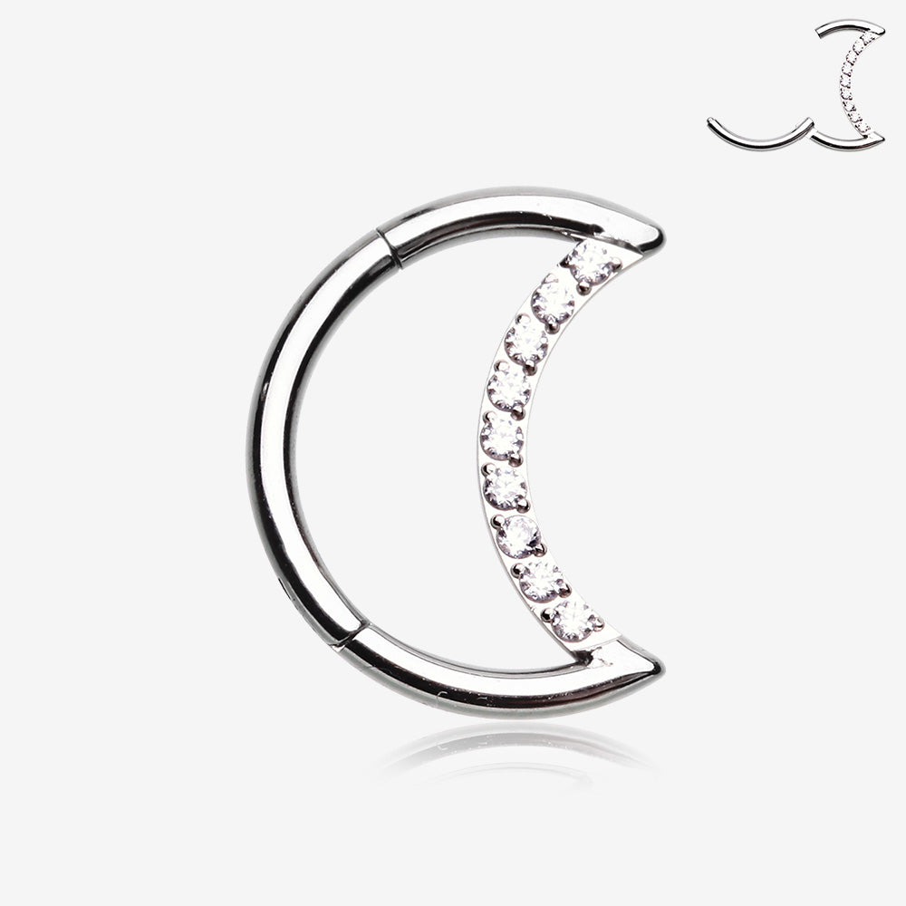 Brilliant Sparkle Gem Lined Crescent Moon Seamless Clicker Hoop Ring