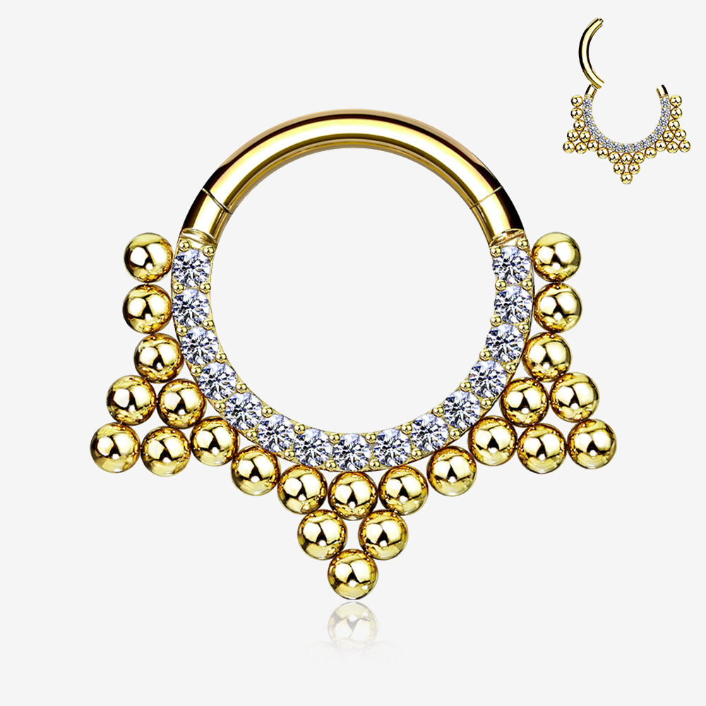 Golden Royal Bali Beads Trine Sparkle Seamless Clicker Hoop Ring