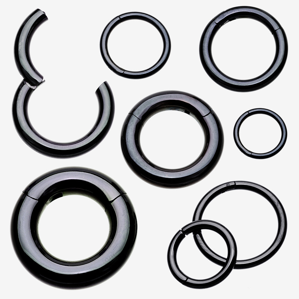 Implant Grade Titanium PVD Blackline Basic Seamless Hinged Clicker Hoop Ring