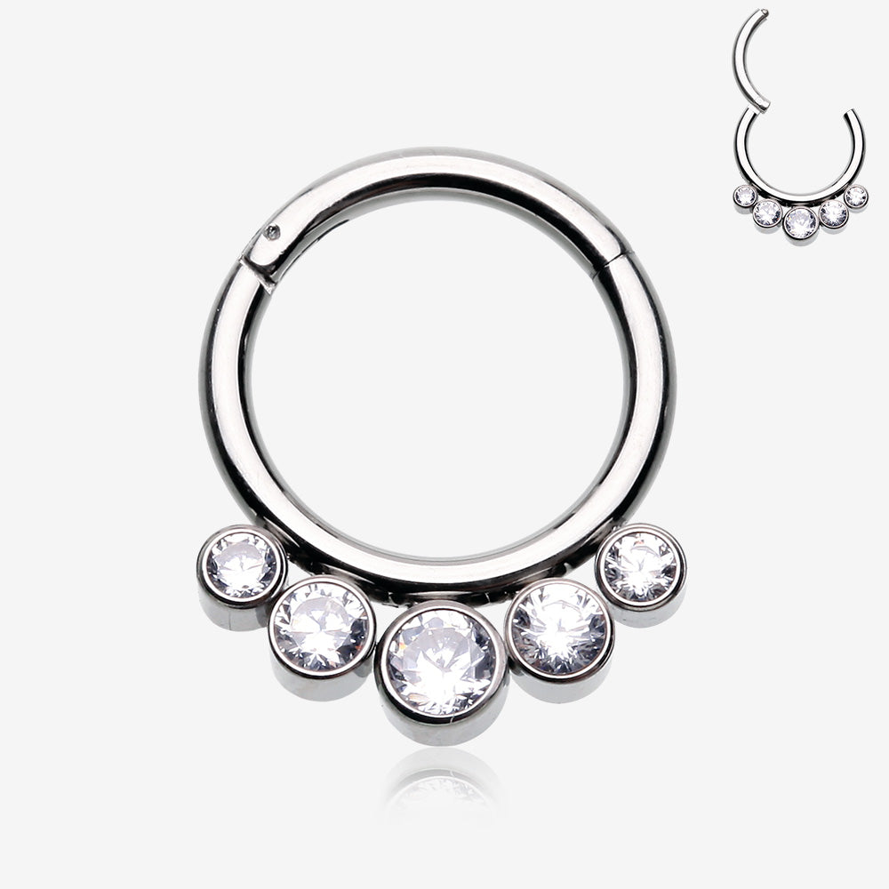 Implant Grade Titanium Quintuple Gem Sparkle Seamless Clicker Hoop Ring