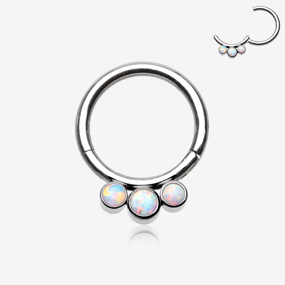 Implant Grade Titanium Triple Fire Opal Sparkle Seamless Clicker Hoop Ring