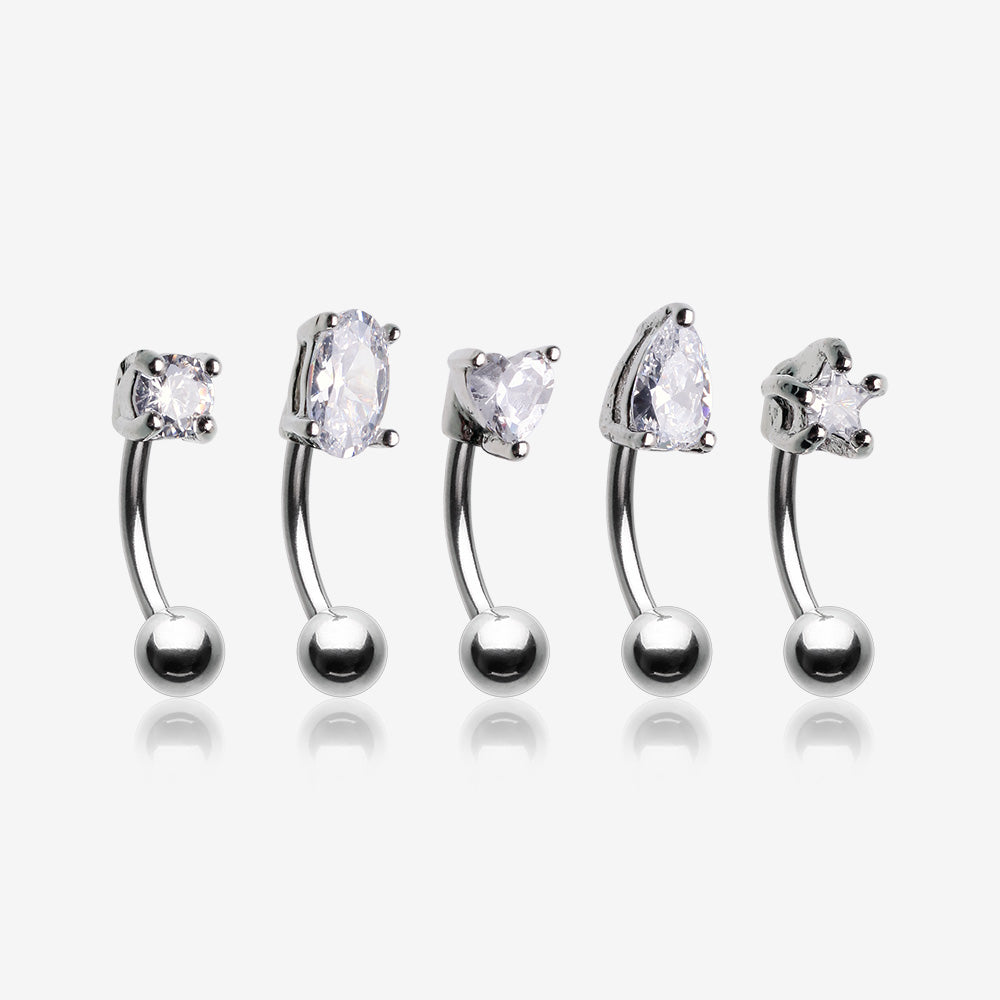 5 Pcs of Assorted Gemstone Prong Set Top Steel Curved Barbell Package