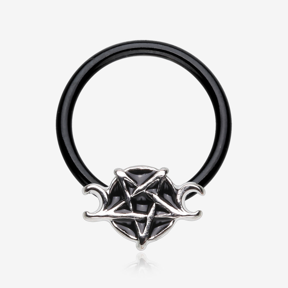Blackline Triple Goddess Pentagram Captive Bead Ring