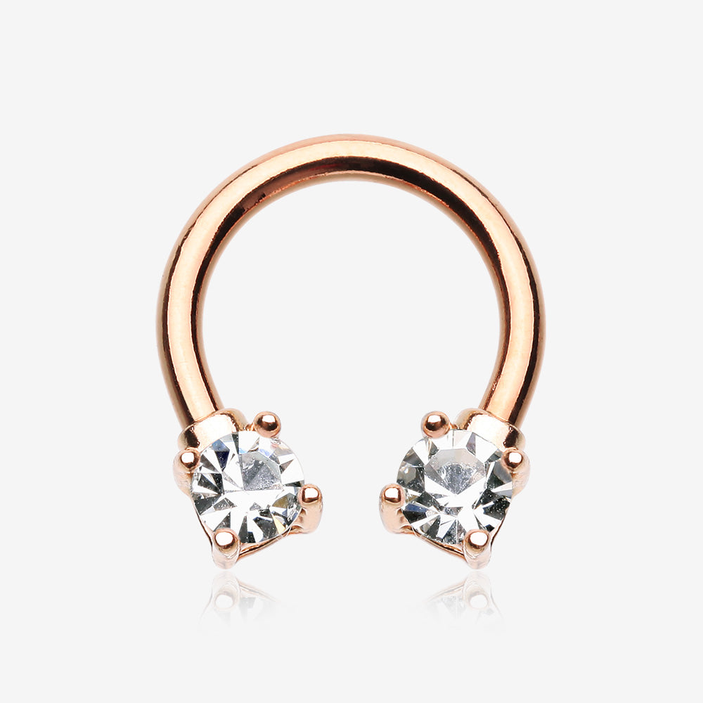 Rose Gold Classic Gem Sparkle Prong Horseshoe Circular Barbell