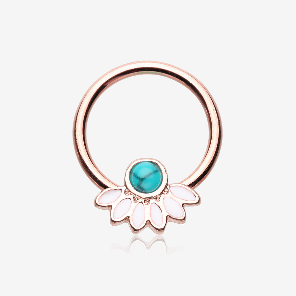 Rose Gold Tribal Turquoise Floral Elegance Steel Captive Bead Ring