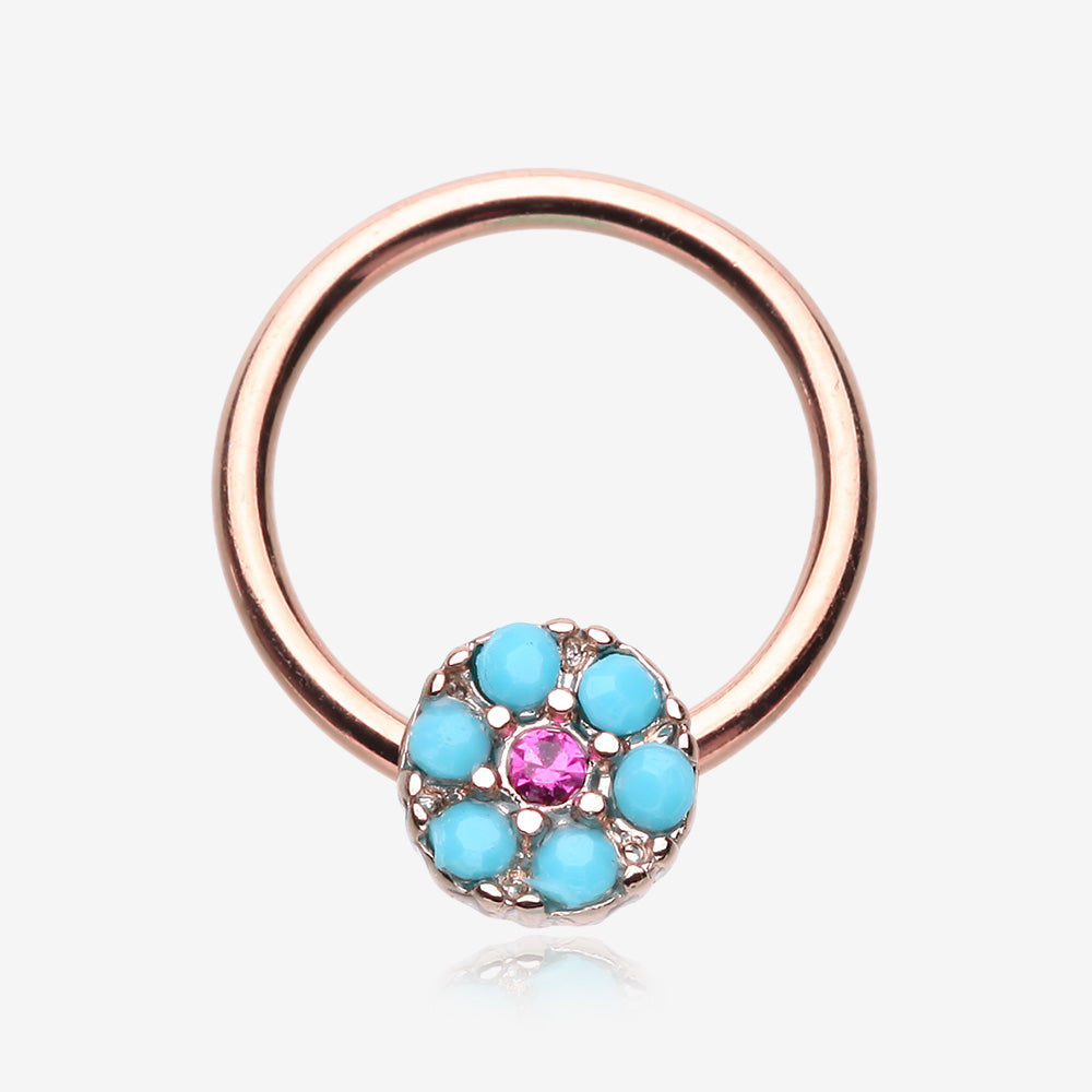 Rose Gold Turquoise Boho Circle Sparkle Captive Bead Ring