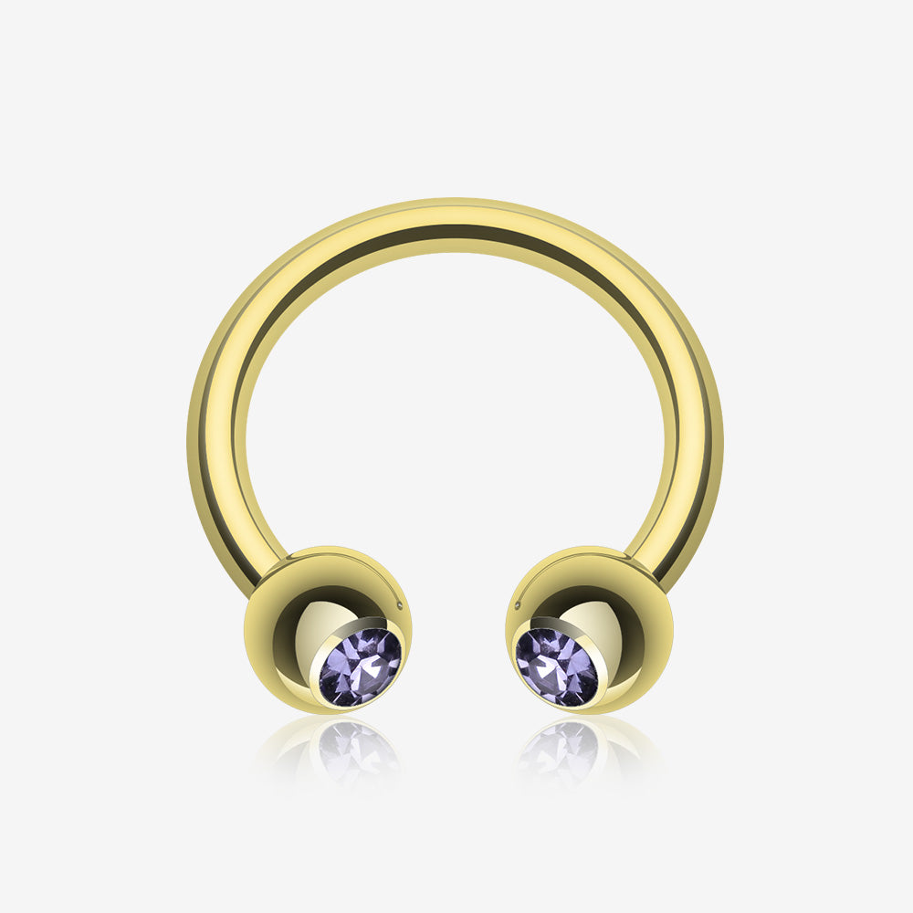 Gold Plated Gem Ball Horseshoe Circular Barbell