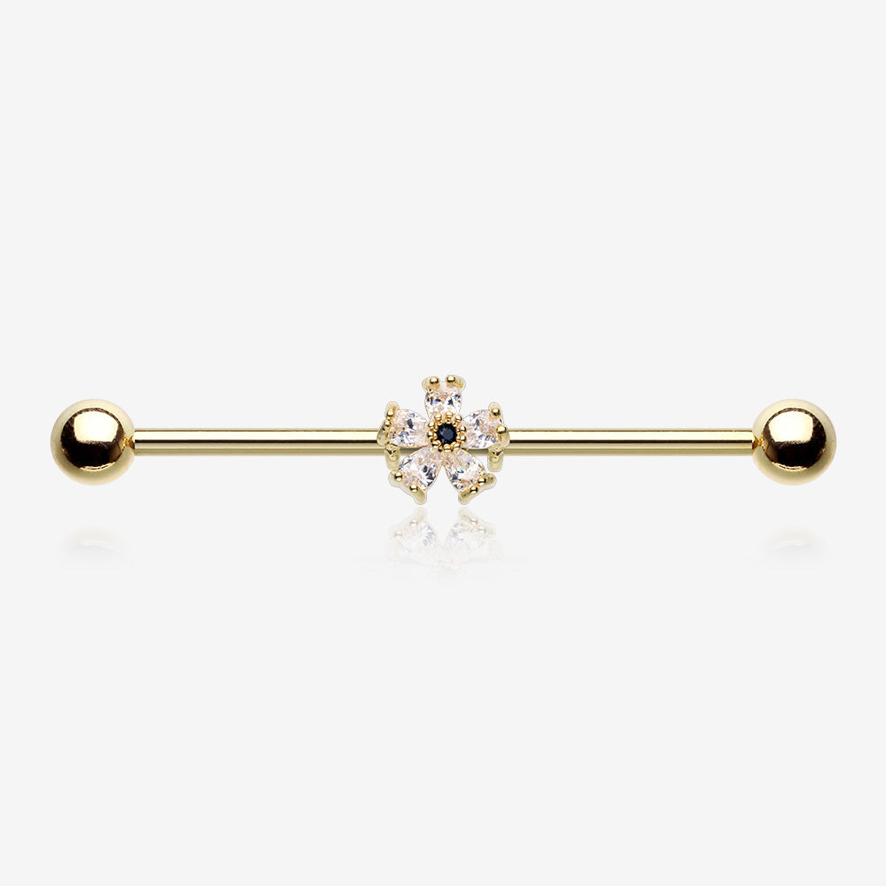 Golden Dainty Flower Sparkle Dazzle Industrial Barbell