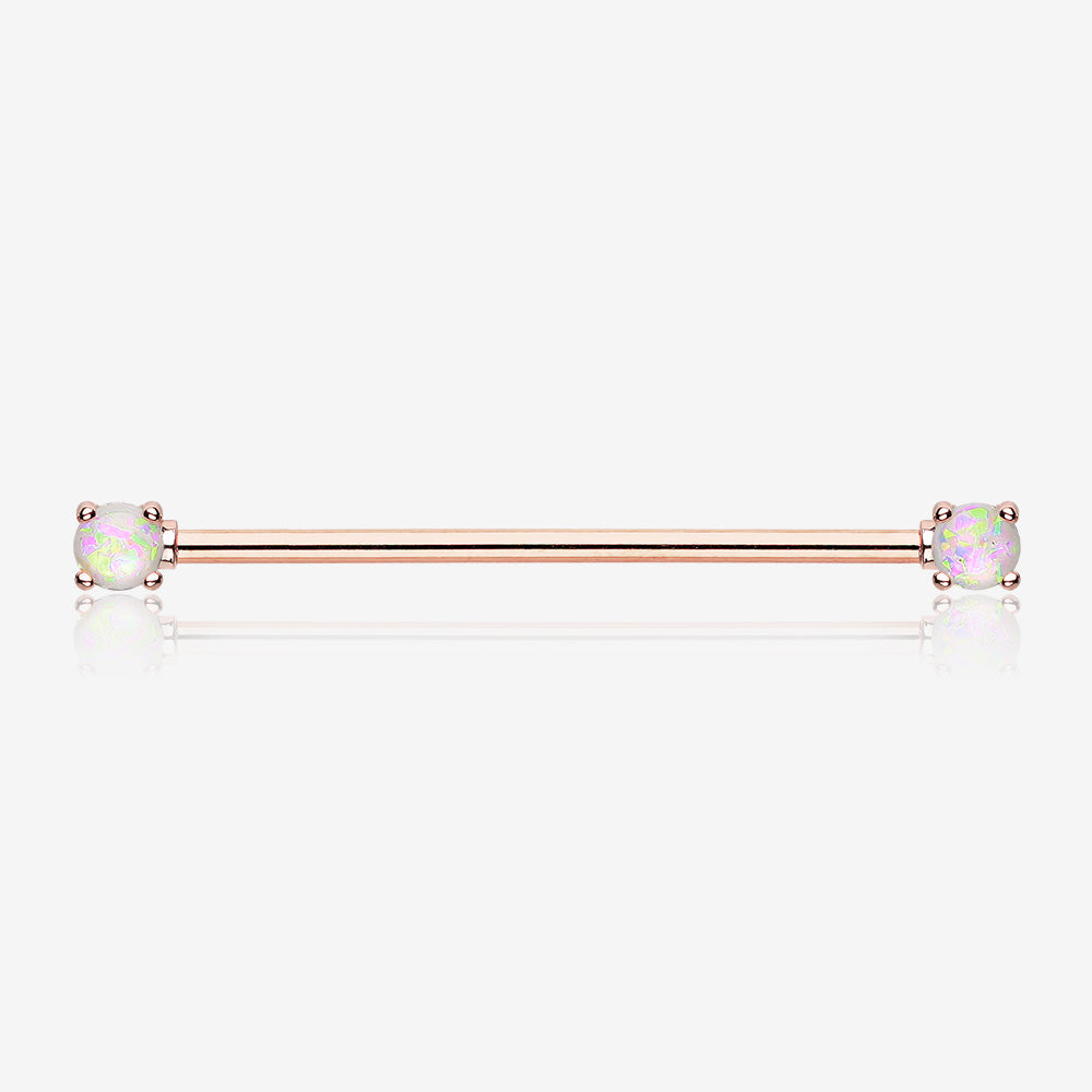 Rose Gold Opal Sparkle Prong Industrial Barbell