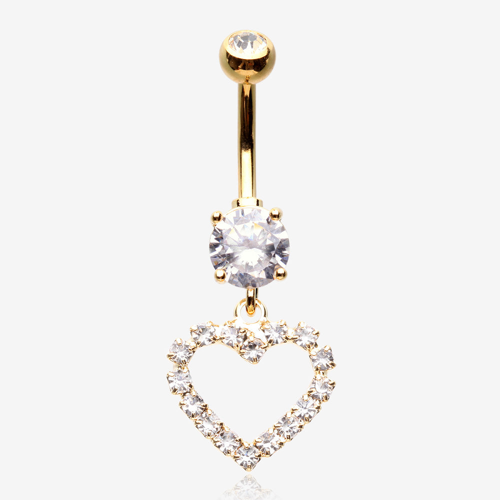 Golden Luscious Hollow Heart Sparkle Splendid Belly Button Ring