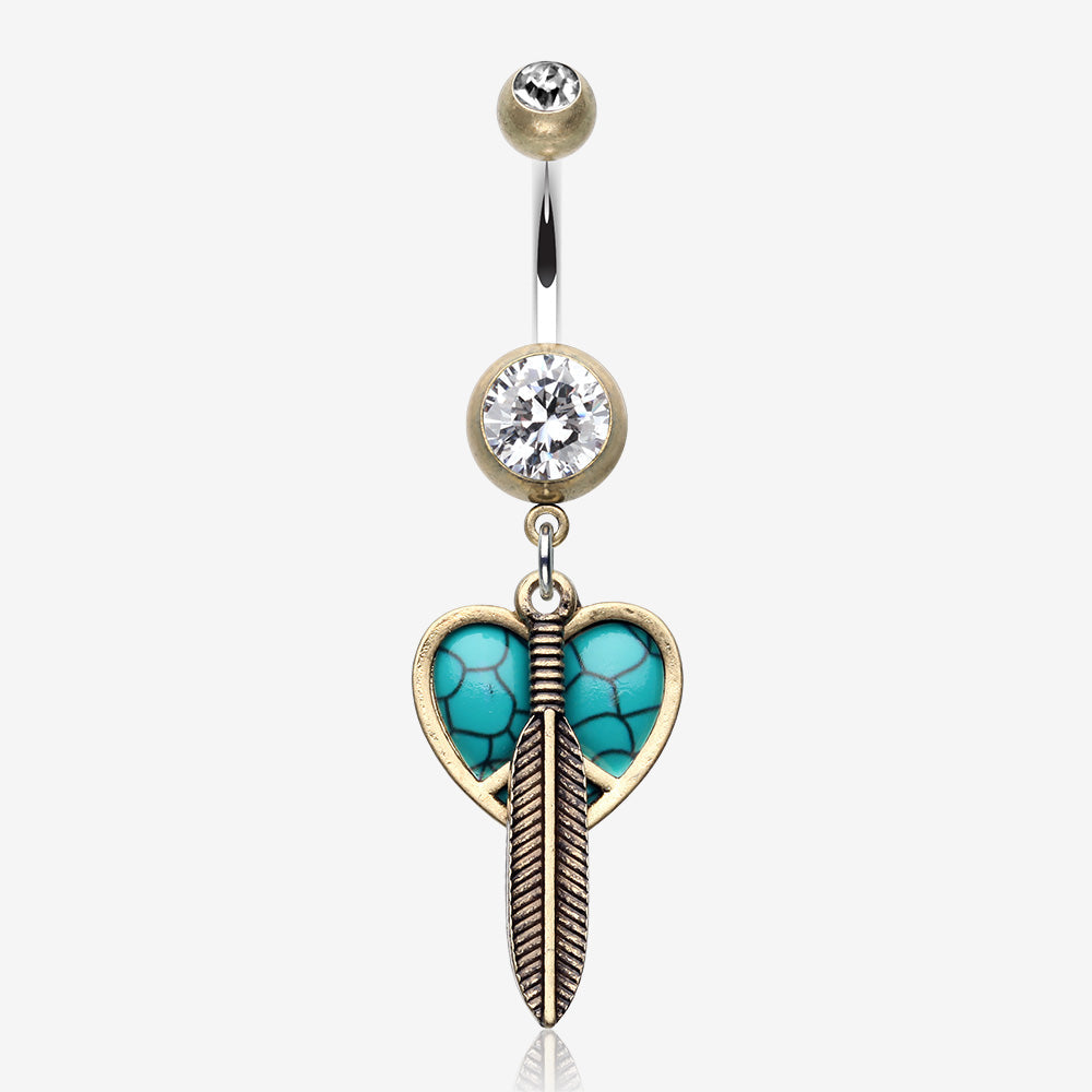 Vintage Boho Peace Heart with Feather Belly Button Ring
