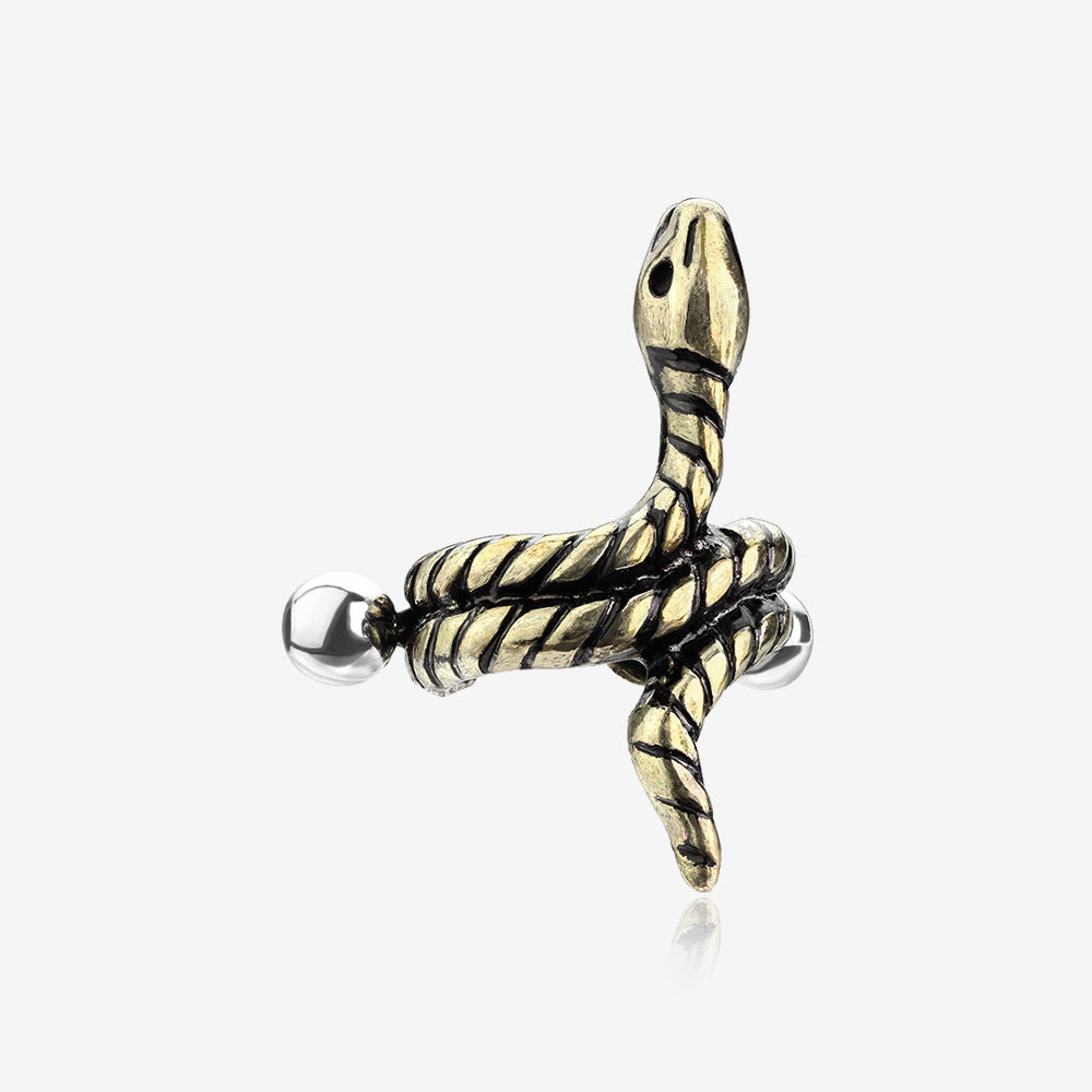 Golden Coiled Serpent Snake Steel Cartilage Helix Cuff Earring