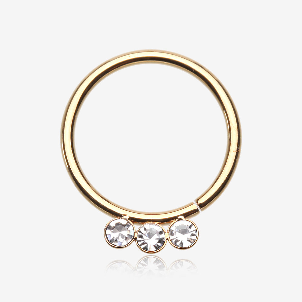 Golden Triple Gem Sparkle Bendable Twist Hoop Ring