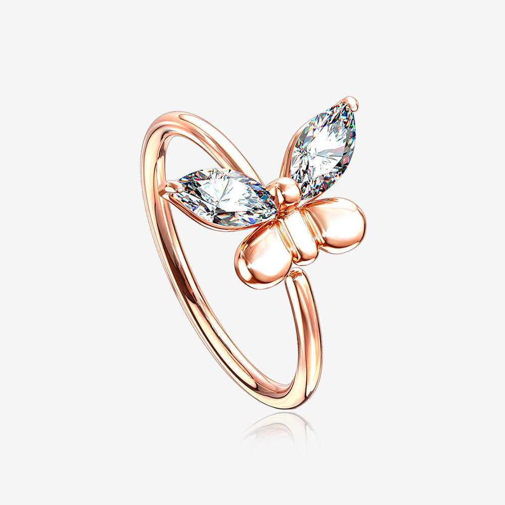 Rose Gold Butterfly Marquise Sparkle Bendable Hoop Ring