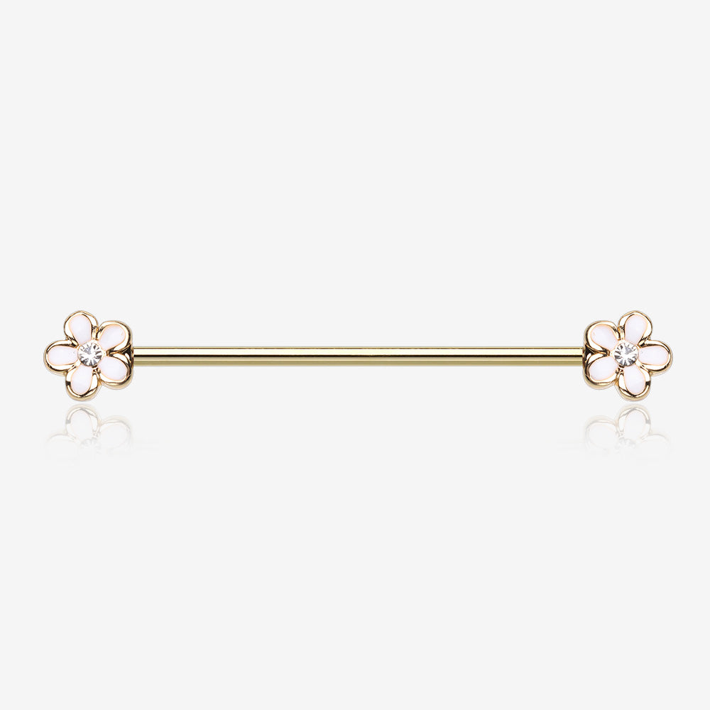Golden Plumeria Flower Sparkle Industrial Barbell