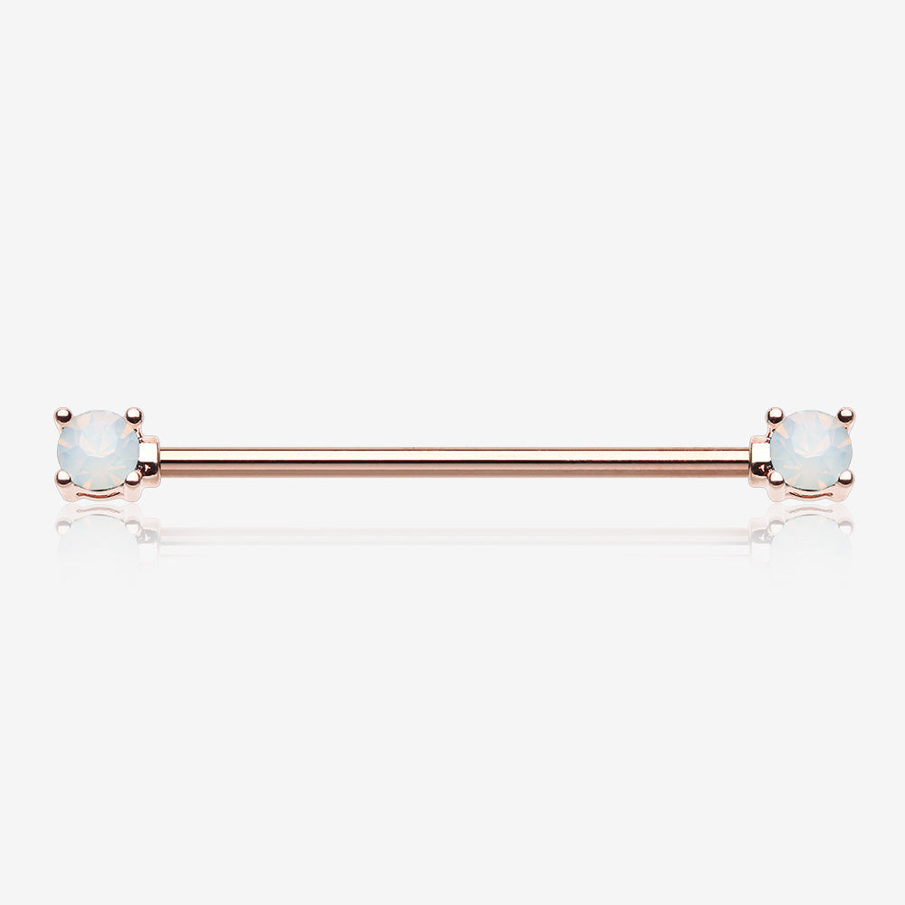 Rose Gold Opalite Gem Prong Industrial Barbell