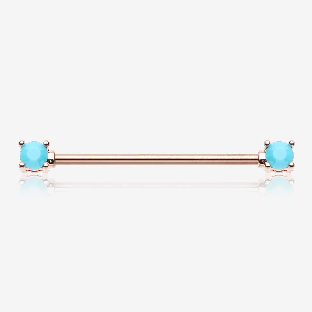 Rose Gold Turquoise Bead Prong Industrial Barbell