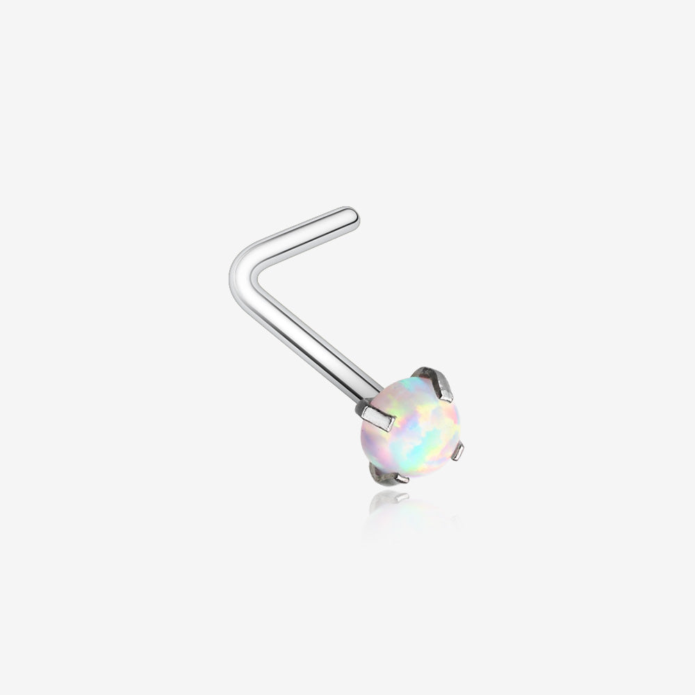 Fire Opal Sparkle Prong Set L-Shaped Nose Ring