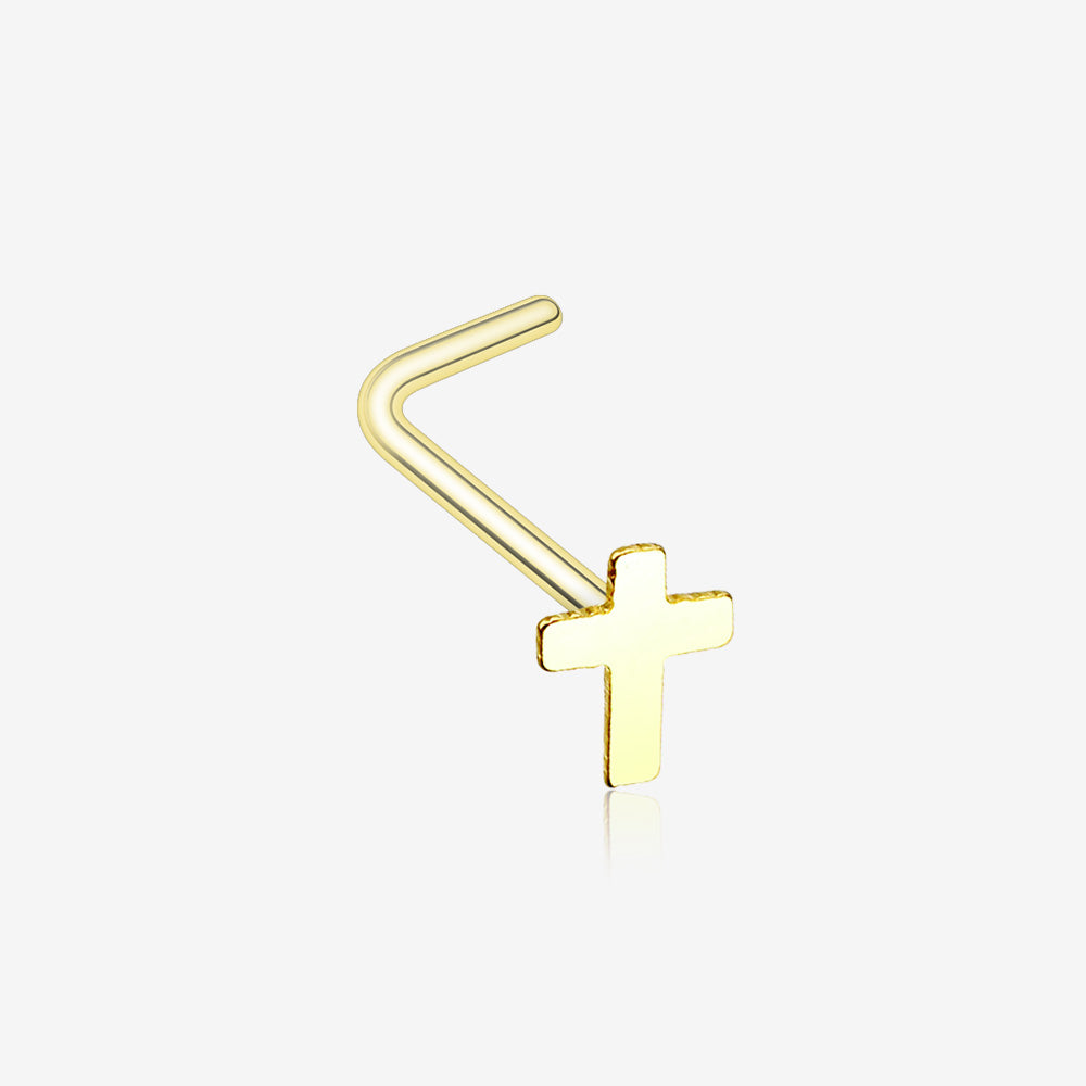 Golden Dainty Cross Icon L-Shaped Nose Ring