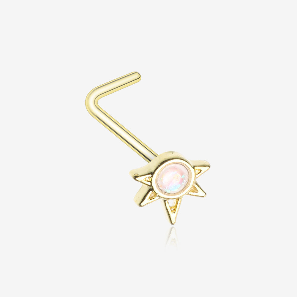 Golden Opalescent Sparkle Starburst L-Shaped Nose Ring