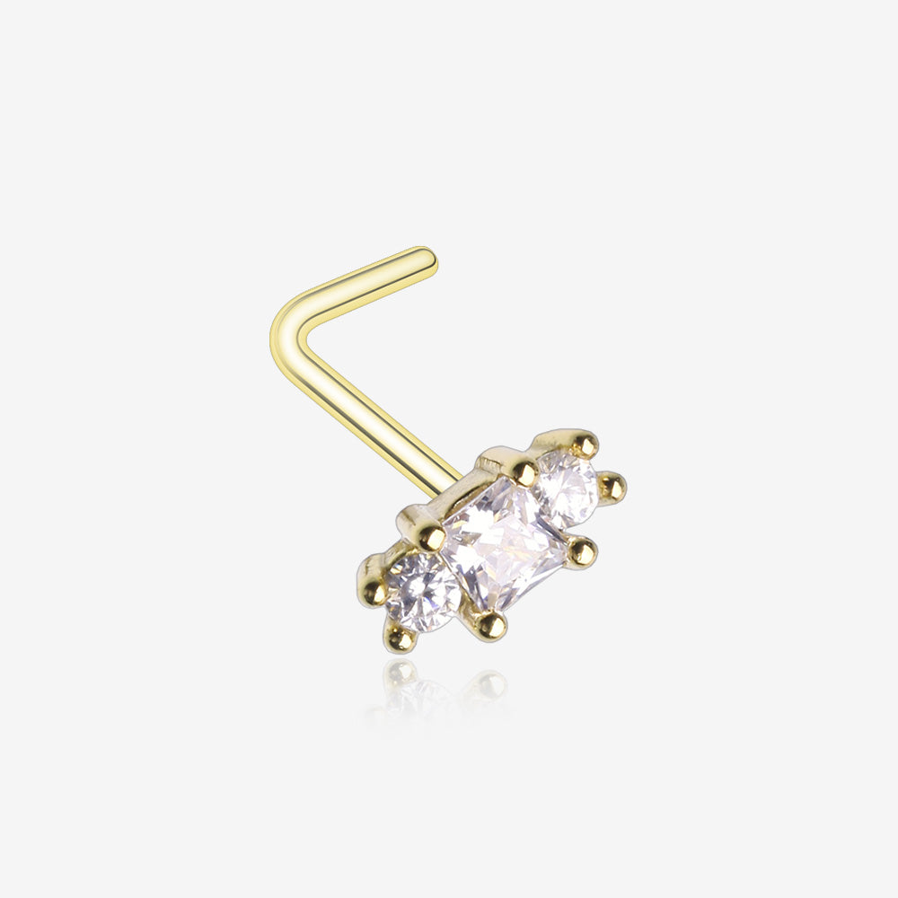 Golden Triple Tiered Sparkle Multi-Gem L-Shaped Nose Ring