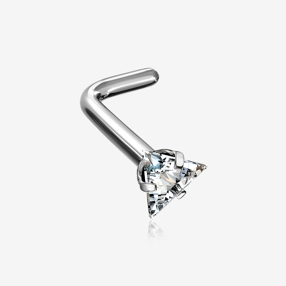 Implant Grade Titanium Triangle Prong Set Sparkle Gem Top L-Shaped Nose Ring