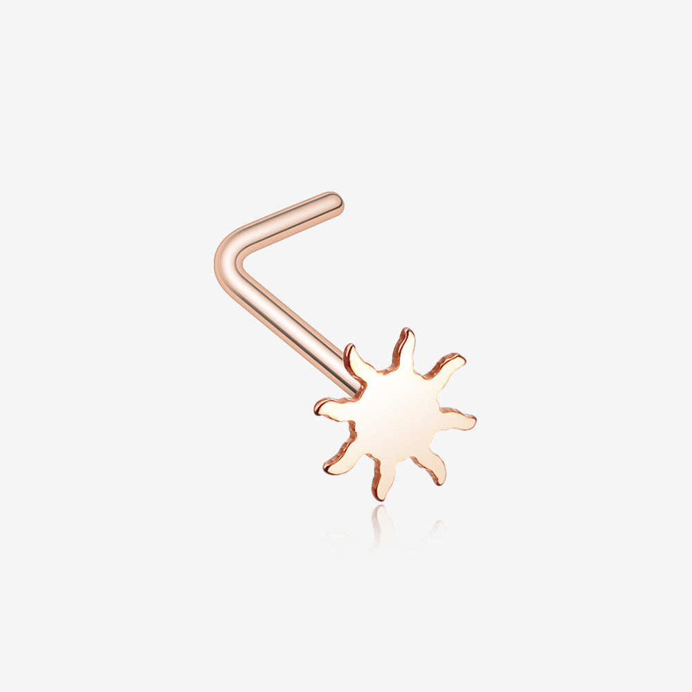 Rose Gold Dainty Blazing Sun Icon L-Shaped Nose Ring