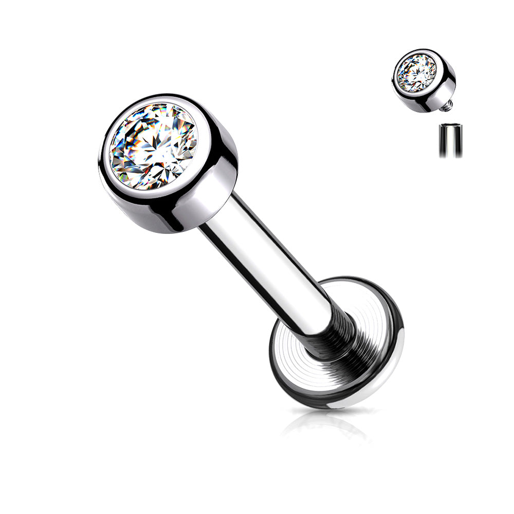 Implant Grade Titanium Internally Threaded Bezel Set Gem Ball Top Labret