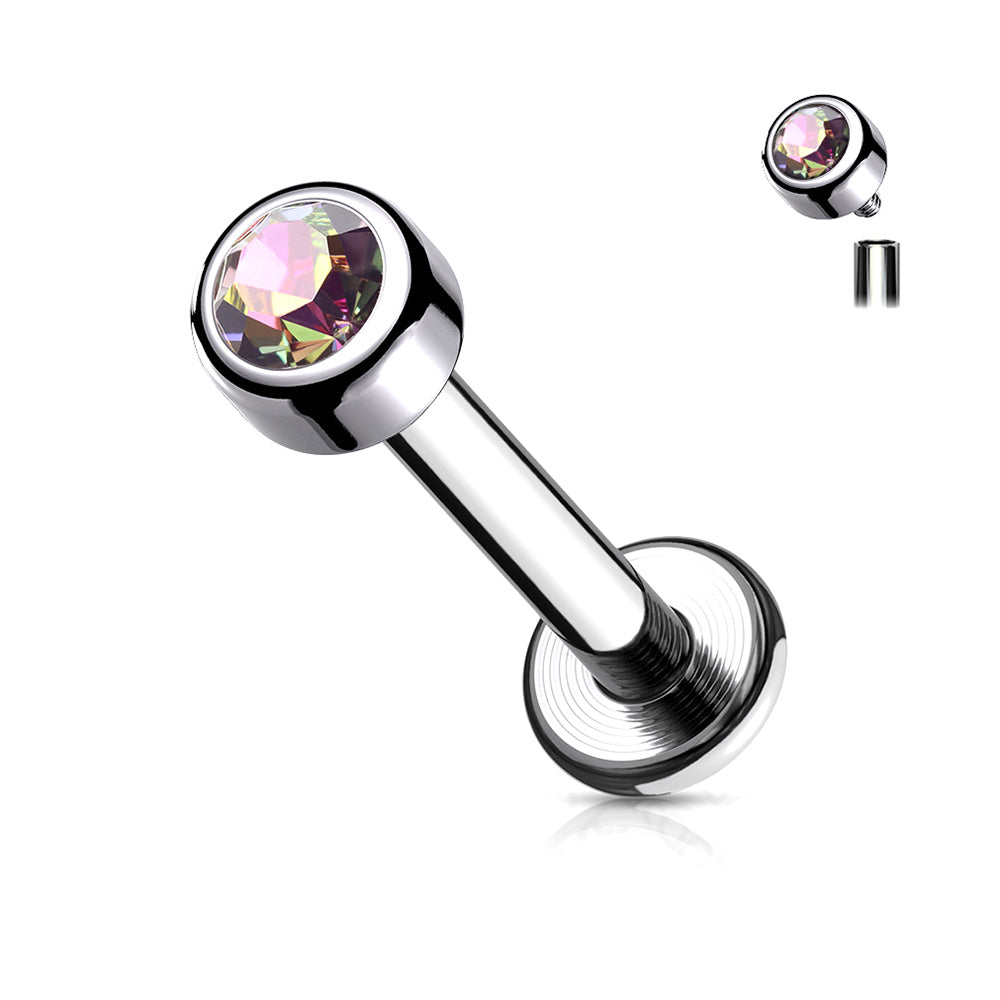 Implant Grade Titanium Internally Threaded Bezel Set Gem Ball Top Labret