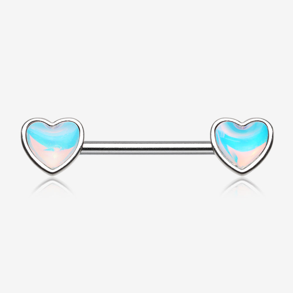 A Pair of Iridescent Revo Heart Nipple Barbell