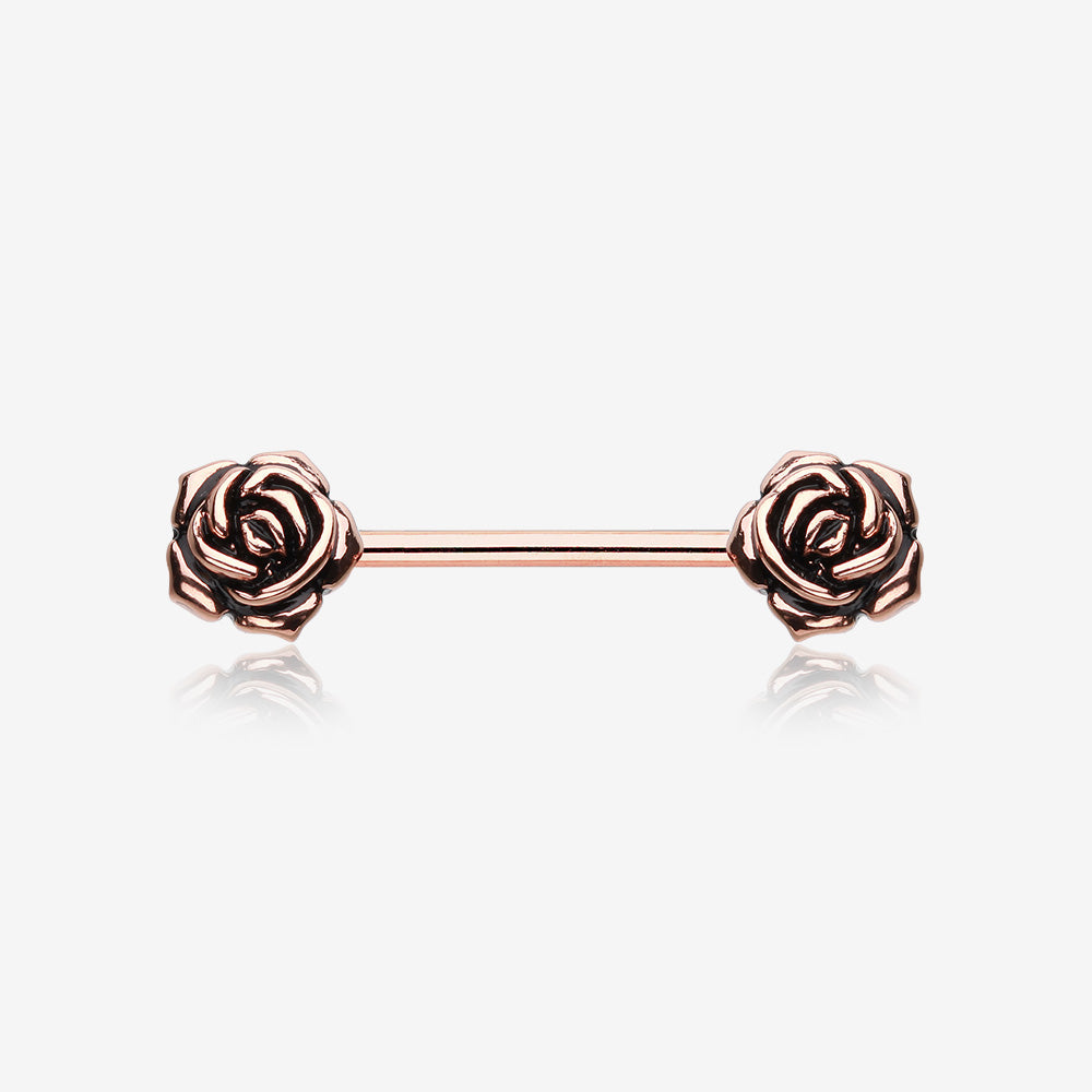 A Pair of Rose Gold Vintage Rose Flower Nipple Barbell Ring